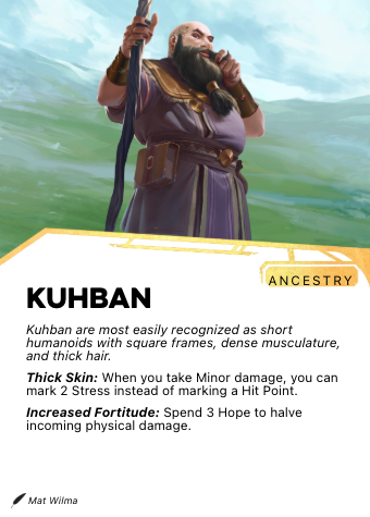 Kuhban physical constitution includes a capacity for deliberate resistance that goes beyond their frame. A dwarf who decides to absorb something rather than avoid it can reduce the damage through sheer accumulated hardness. Among people who have fought alongside Kuhban, this is considered one of their defining qualities.