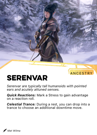 Serenvar do not sleep — they enter a trance that achieves the same restoration in a fraction of the time, and from which they emerge with a sharpness that has made their night watches legendary. The trance also gives them a quality of reflection unavailable to ancestries that lose consciousness entirely.